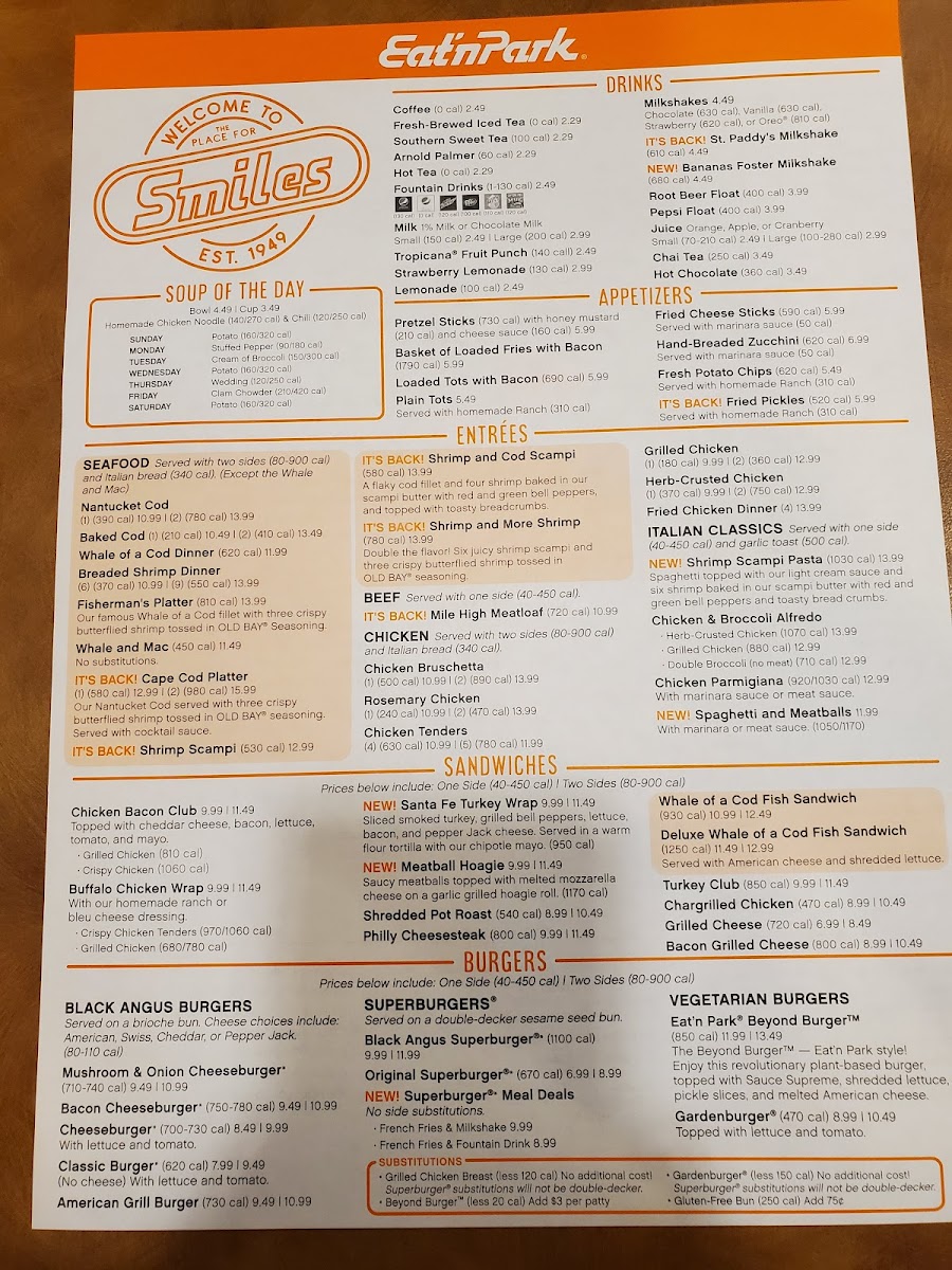 Eat'n Park offers a straightforward, family-friendly menu that feels like a welcoming neighborhood spot. The menu features comforting classics and casual bites that work well throughout the day, from hearty breakfast choices to satisfying dinner options. Whether you're stopping by for a quick takeout, enjoying a relaxed meal with the kids, or sharing a buffet with family and friends, the offerings balance familiar flavors with simple, well-prepared dishes.